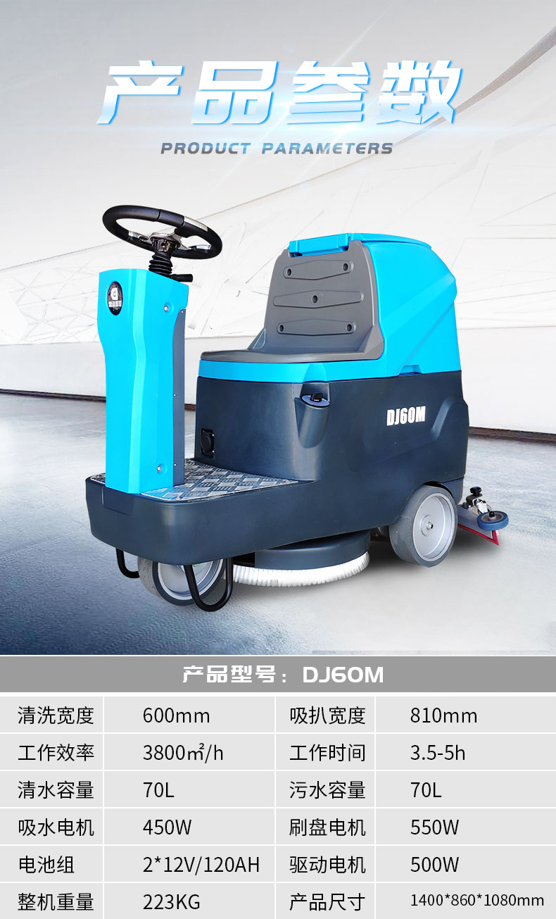 鼎潔盛世DJ60M駕駛式洗地機優(yōu)勢: